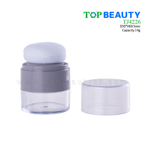 Round plastic loose powder jar with puff TJ4226